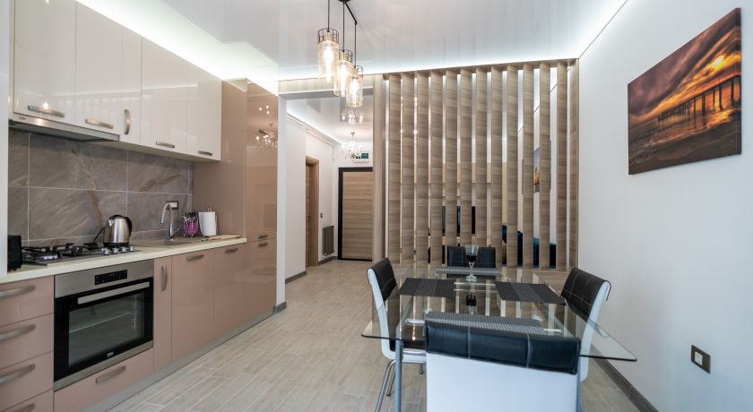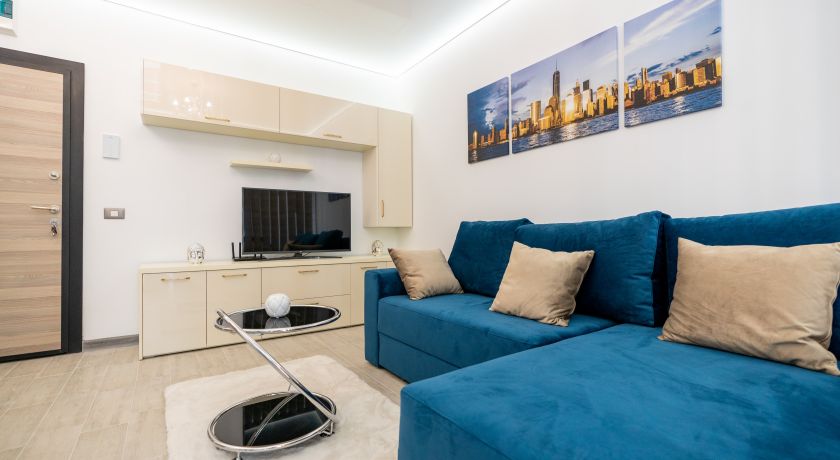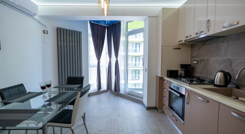 Apartamentul este situat într-o clădire nouă, beneficiind de un design rafinat și un balcon generos, unde oaspeții se pot bucura de momente de relaxare și de briza mării.
