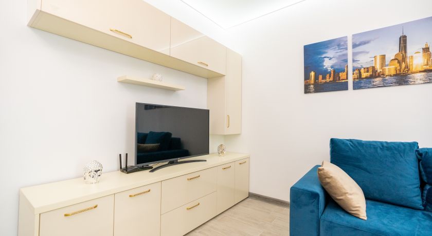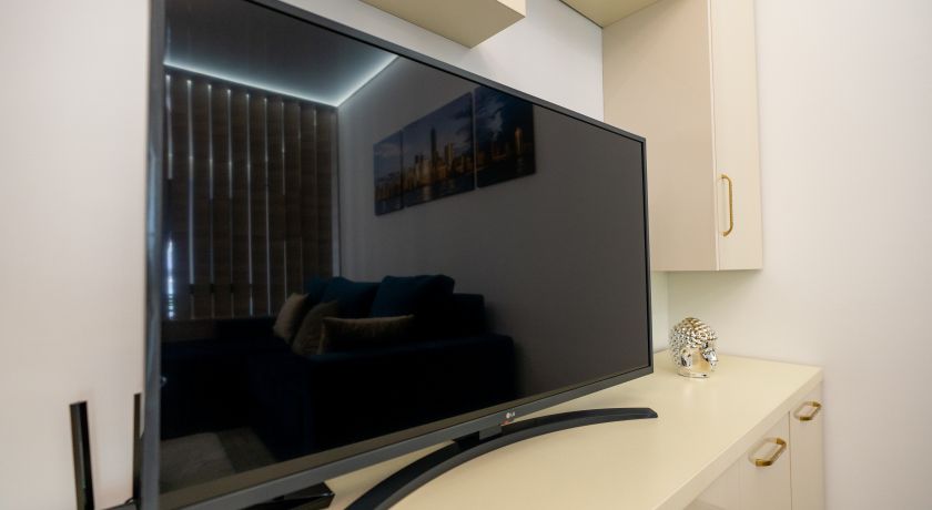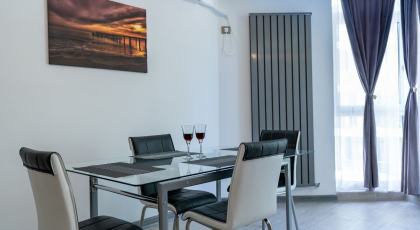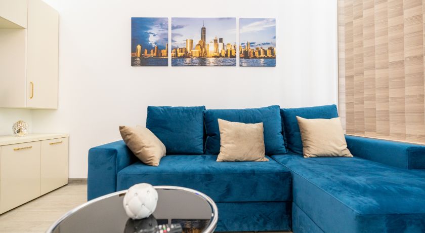Apartamentul dispune de două camere (dormitor + living), oferind un pat matrimonial confortabil, o canapea extensibilă spațioasă, un decor elegant și Smart TV. Atmosfera caldă și primitoare te va face să te simți ca acasă, iar designul modern contribuie la un sejur relaxant și revigorant.